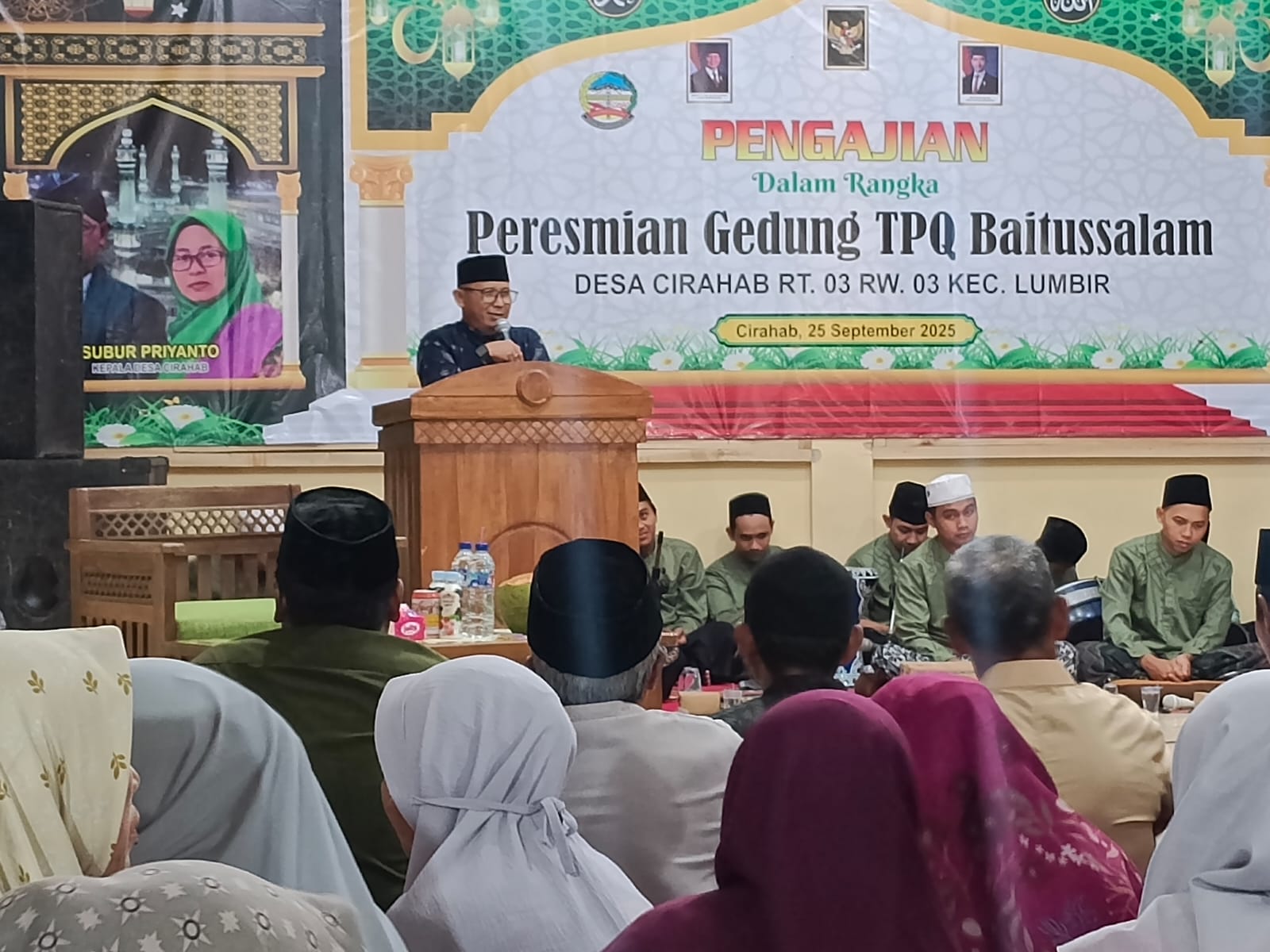 Bapak Subur Priyanto, Kepala Desa Cirahab, dalam sambutannya menekankan pentingnya pendidikan agama sebagai fondasi moral dan karakter generasi penerus. “TPQ bukan hanya tempat belajar membaca Al-Quran, tetapi juga tempat menanamkan nilai-nilai luhur agama yang akan membimbing anak-anak kita menjadi pribadi yang berakhlak mulia,” katanya.